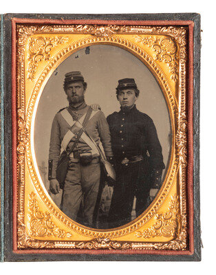 [MILITARIA]. Quarter plate tintype of a pair of pards incl. 7th New York National Guardsman.