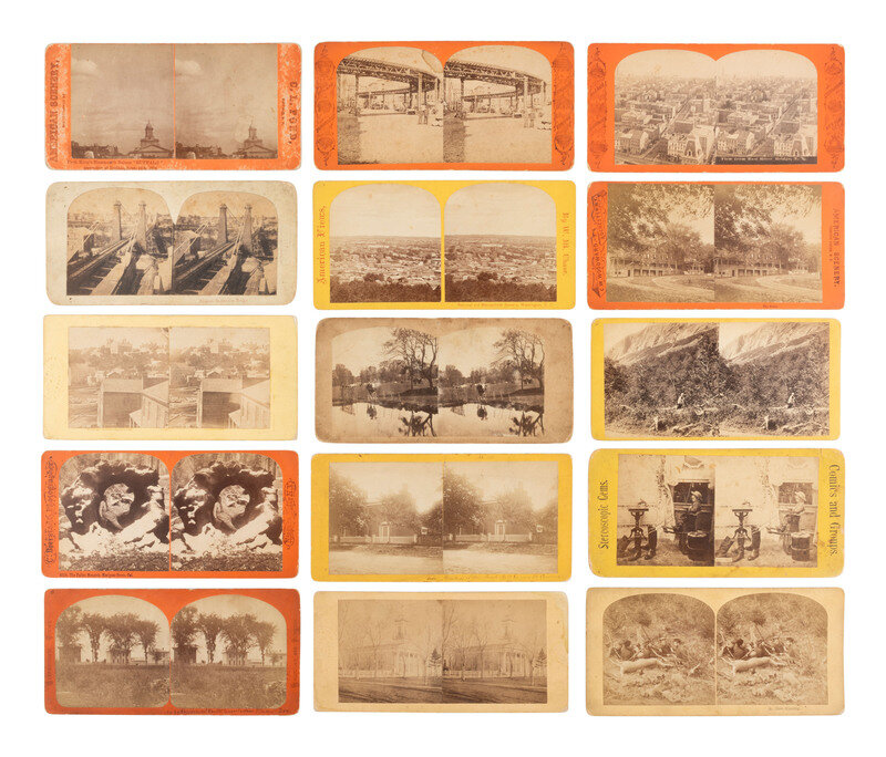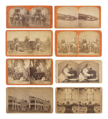 [EARLY PHOTO] 72 stereoviews of various scenes and subjects, incl. Harriet Beecher Stowe's house.