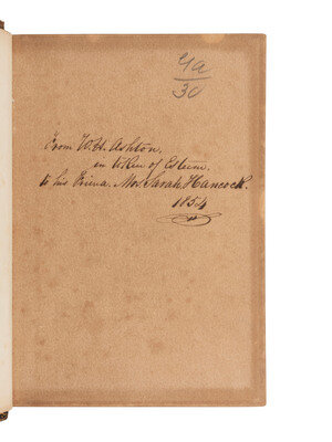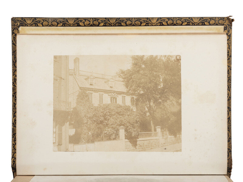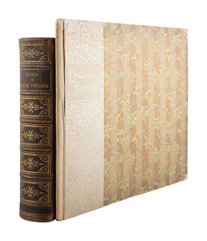 Homes of American Statesmen: with Anecdotal, Personal, and Descriptive Sketches, by Various Writers. New York: G.P. Putnam & Co., 1853. Notable for being the first American book illustrated with an original photograph (3 3/4 x 5 in.) which is a salt print of the Hancock House in Boston tipped in as a frontispiece. FFEP with personal inscription from W.H. Ashton to Mrs. Sarah Hancock, 1854. -- English Scenery: Ten Photogravures of English Landscape From Original Phoographs by Dr. J.I. Williams. Boston: Joseph Knight Co., [1893]. Eight of ten photogravures are present. -- Together, 2 photographically illustrated works.