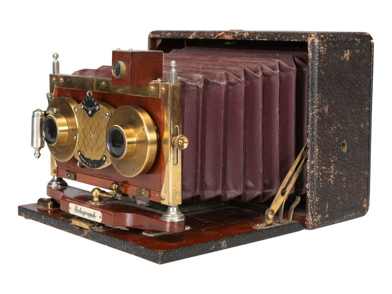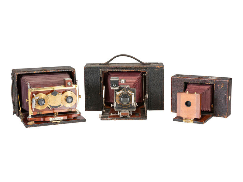 [EARLY PHOTOGRAPHY] 3 late 19th-early 20th century cameras, highlighted by Stereo Solograph camera.