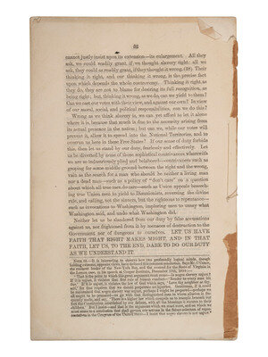 Issued after Lincoln received the Presidential nomination, Lincoln's Cooper Institute speech was one of his most famous anti-slavery speeches. Harold Holzer, author of the book Lincoln at Cooper Union: The Speech that Made Abraham Lincoln President, argues that this speech was "the most pivotal public appearance in his career." It was, in may ways, the speech that introduced a western politician to the east, and is perhaps best known for his line: "Let us have faith that right makes might, and in that faith, let us, to the end, dare to do our duty as we understand it." RARE.
