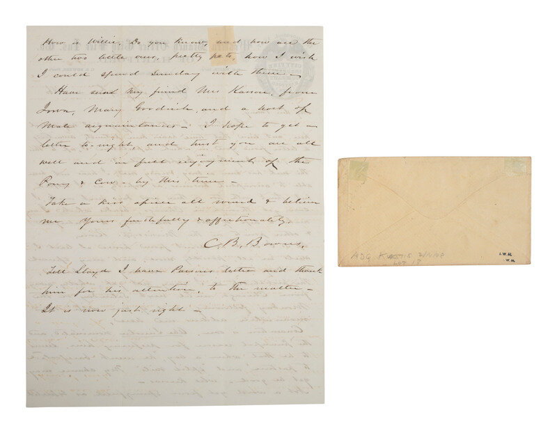 BOWERS, C.B. Autograph letter signed ("C.B. Bowers") as President of the City Fire Insurance Company of Hartford. Addressed to his wife.