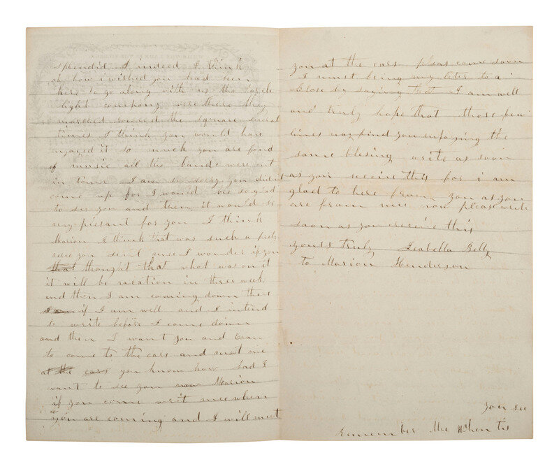 3pp., bifolium, signed ("Isabella Belty"), creased along old folds, some soiling.