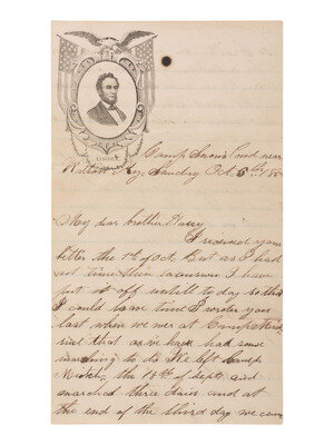 [LINCOLNIANA - CIVIL WAR]. Illustrated lettersheet with soldier's letter.