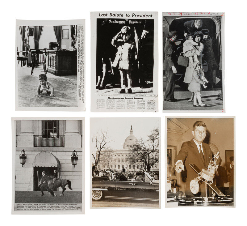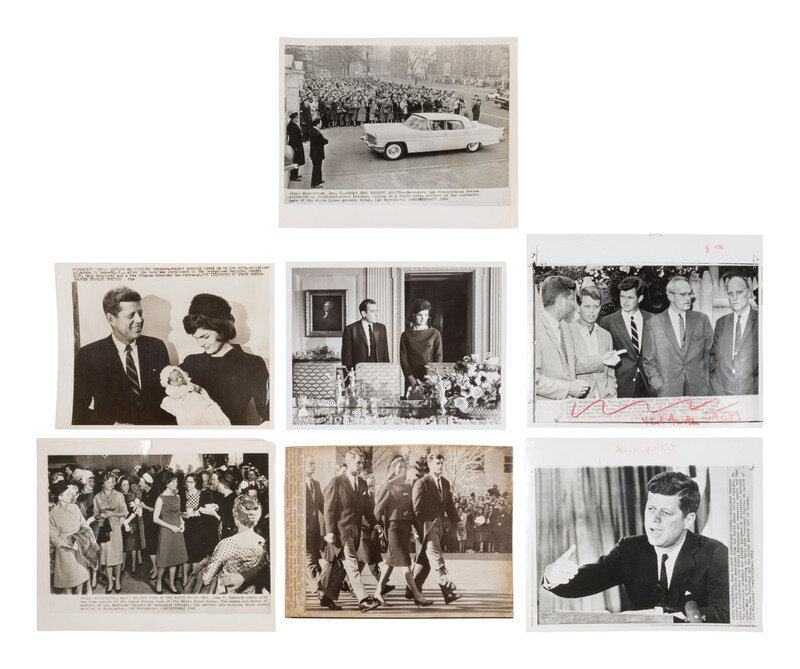 [KENNEDY, John F.] 13 press photos of John F. Kennedy, Jacqueline, their family, and the funeral.