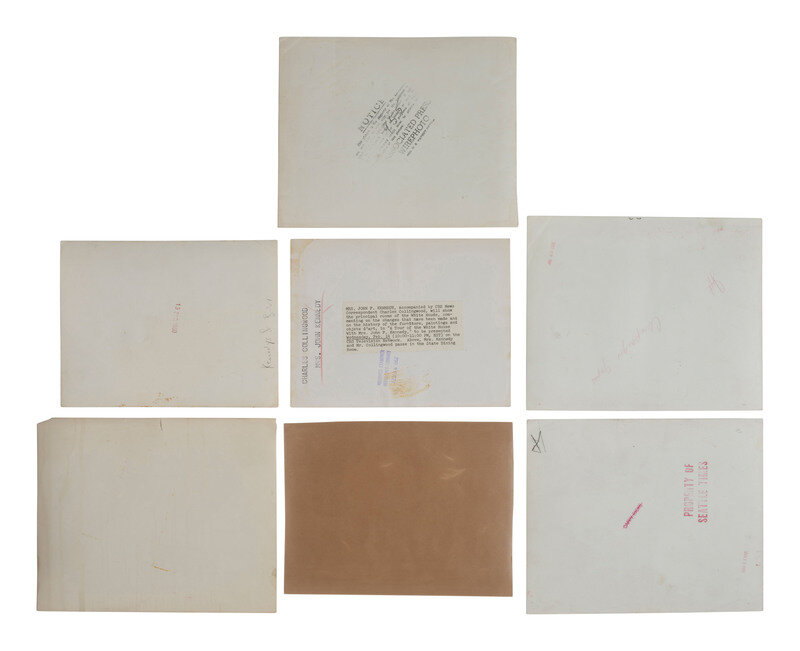 Lot comprised of 13 silver gelatin press photographs, approx. 8 1/4 x 10 in. or smaller, either captioned in the negative or on applied paper label on verso. Many with dates ink stamped on verso.