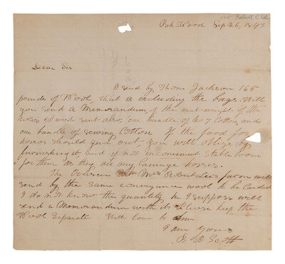 SCOTT, B. P. ALS to Duff Green, Esq. of Falmouth, [VA], 26 September 1843.