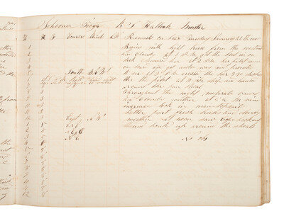 [MARITIME]. Log book of the schooner Tioga, documenting multiple voyages, 1844-45.