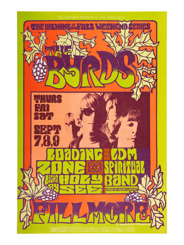 [MUSIC]. 2 Fillmore Auditorium posters promoting The Byrds and Them with the Sons of Champlin.