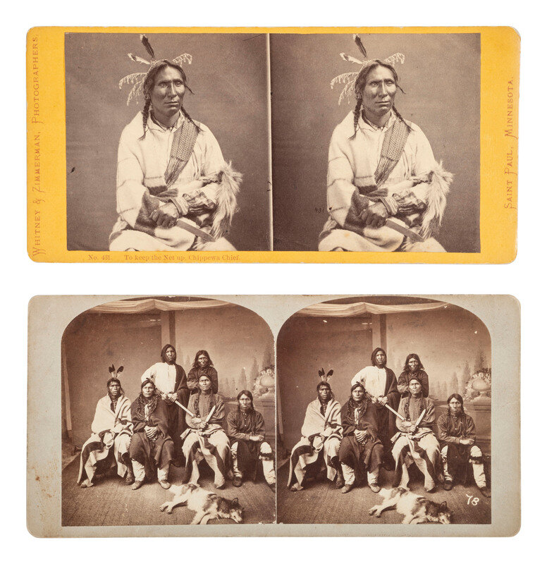 [NATIVE AMERICANS]. 2 stereoviews of Chippewa Indians by CASWELL, WHITNEY and ZIMMERMAN.