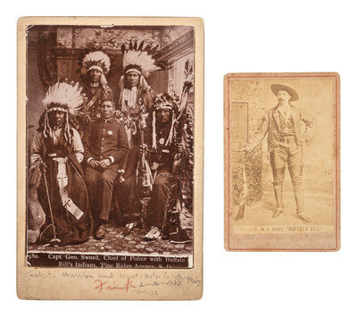 [NATIVE AMERICANS] Cabinet card of Capt. Sword with Buffalo Bill's Indians [With:] Buffalo Bill CDV