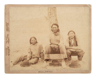 [NATIVE AMERICANS]. Photograph of three young Sioux men. Chicago: Grabill, 1890.