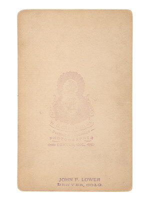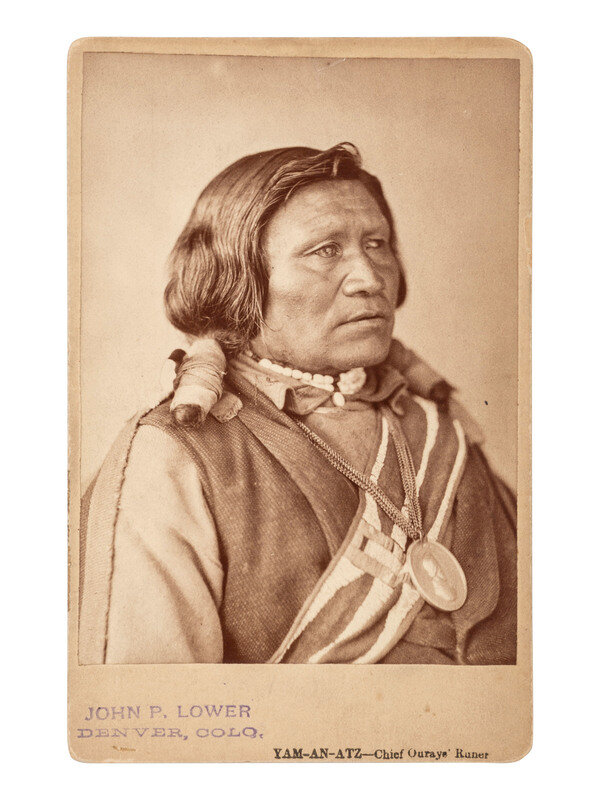 Cabinet photograph of Yamapi, identified in lower margin as "Yam-An-Atz - Chief Ourays' Runer [sic]." Verso with credit to W.G. Chamberlain, Denver, CO. Recto and verso with ink stamps of John P. Lower, Denver, CO.
