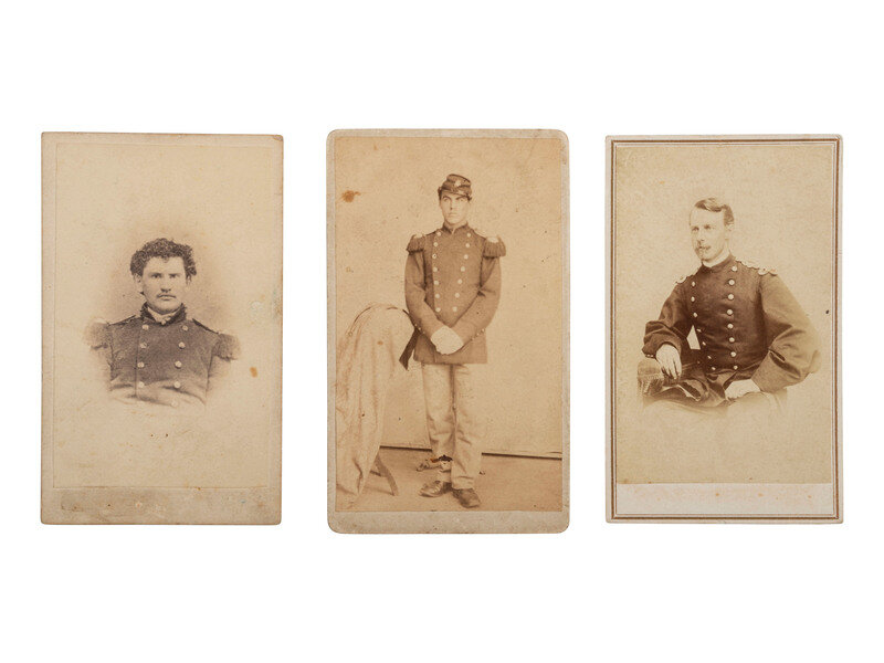[CIVIL WAR]. 3 CDVs of US marines, incl. postwar example featuring globe and anchor insignia.