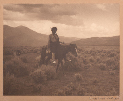 MOON, Carl (1878-1948), photographer. Coming Through the Sage. 13 1/4 x 16 3/4 in. photograph on mount, housed in wooden frame, 23 3/4 x 27 in. Photograph with "1914 Karl Moon" copyright blindstamped at lower right. Manuscript title in lower margin.