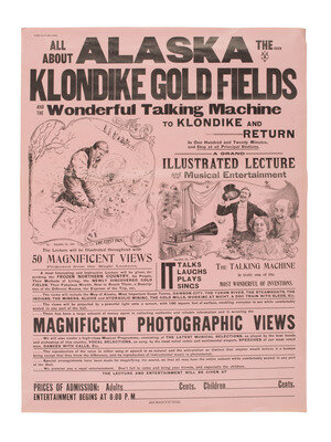 All About Alaska / The Klondike Gold Fields and the Wonderful Talking Machine / To Klondike and Return... Chicago: Sears, Roebuck, & Co. [1898]. 24 1/4 x 18 in. printed broadside.