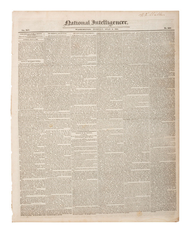 National Intelligencer. Vol. XLV, No. 6483. Washington, DC: Gales & Seaton, 9 July 1844.