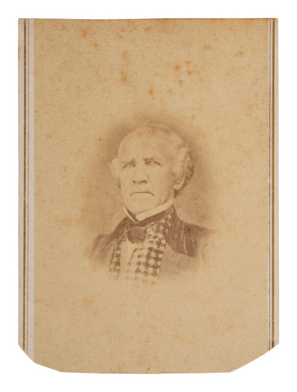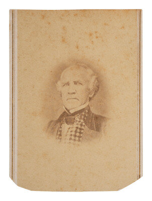 [TEXAS -- HOUSTON, Sam (1793-1863)]. CDV of Houston wearing a plaid vest. N.p., ca 1860s.