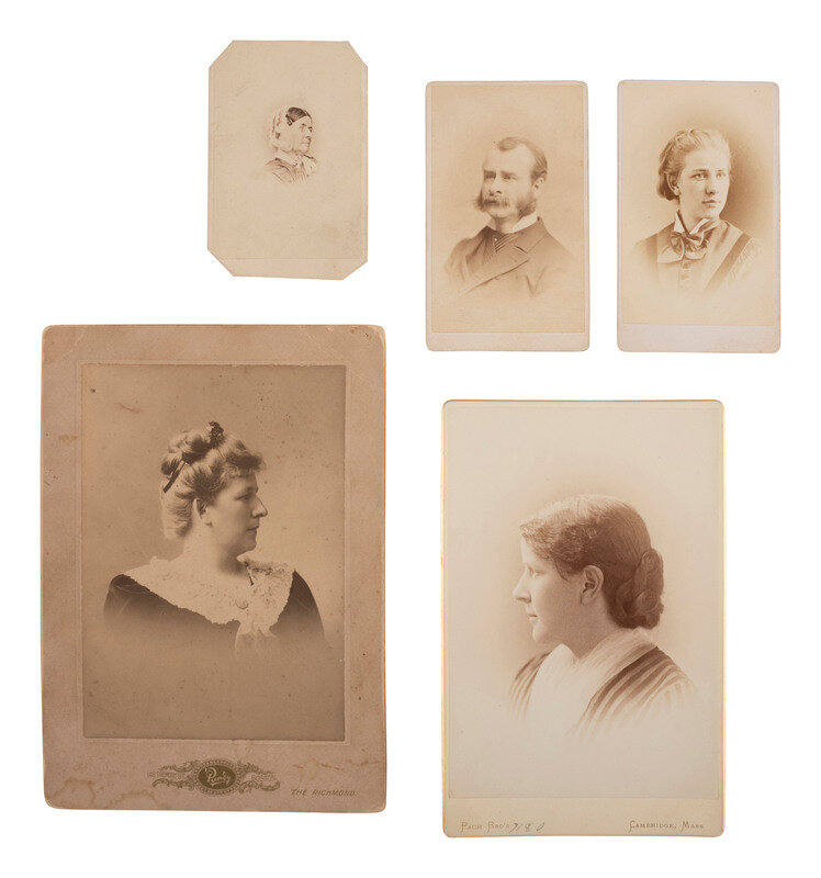 [With:] Photographs of various formats featuring identified images of Annie Adams Whipple (1853-1930) and her husband Henry Lyman Shaw (1837-1911), Mary Frances Whipple (1875-1874), Lucy Warren Whipple (1857-1944), and Margaret Tufts Mann. -- Photographs of other unidentified subjects and events include a group of 10 celluloid negatives of 19th century photographs, possibly J.A. Whipple's works. -- Group of 10 contact sheets of 20th-century photographs depicting early auto races, beach scenes, a cityscape, and other views.
