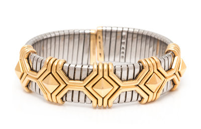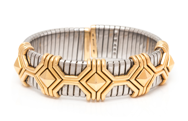 A Stainless Steel and 18 Karat Yellow Gold Tubogas Cuff Bracelet, Bvlgari, 51.90 dwts.
