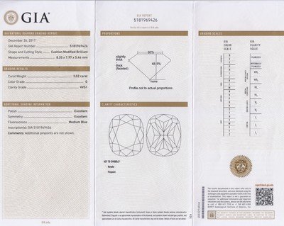 A 3.02 Carat Cushion Shape Diamond,