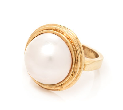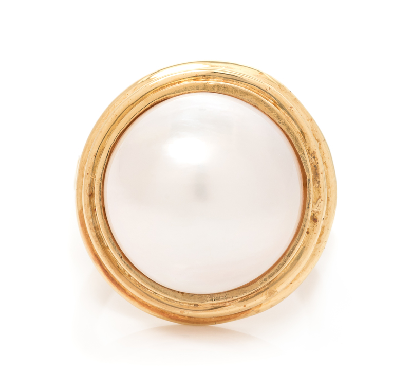 A Yellow Gold and Cultured Mabe Pearl Ring, 7.70 dwts.