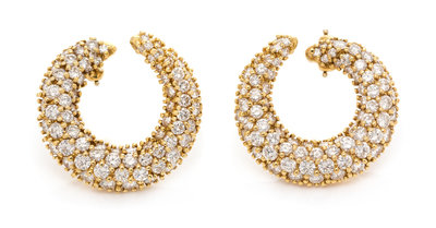 A Pair of 18 Karat Yellow Gold and Diamond Earclips, Hammerman Brothers, 8.35 dwts.
