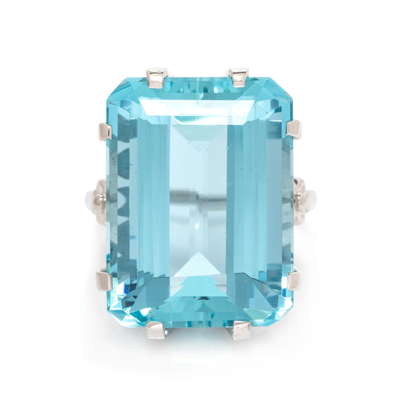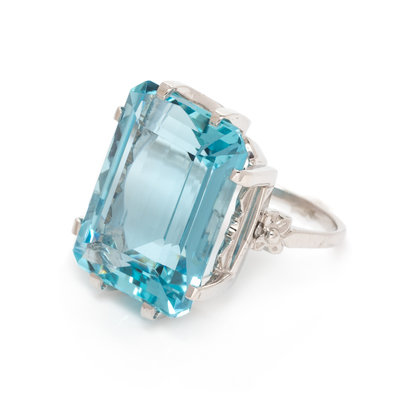 An 18 Karat White Gold and Aquamarine Ring, 7.50 dwts.