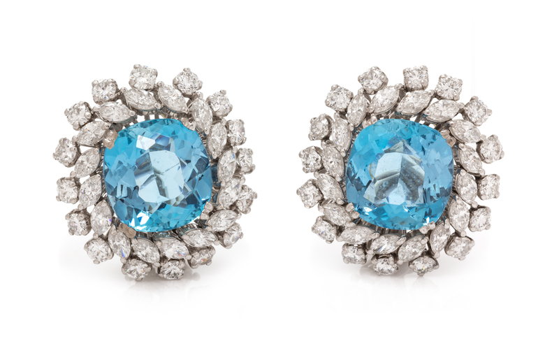 A Pair of Platinum, Aquamarine and Diamond Earclips, 8.35 dwts.