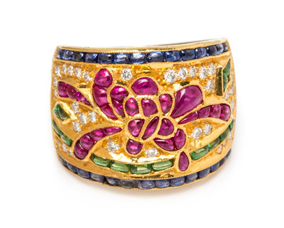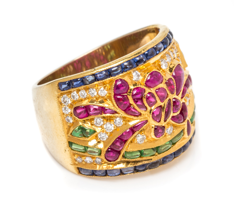 A Yellow Gold, Diamond and Multigem Band, 10.40 dwts.