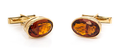 A Pair of Yellow Gold and Citrine Cufflinks, 7.65 dwts.