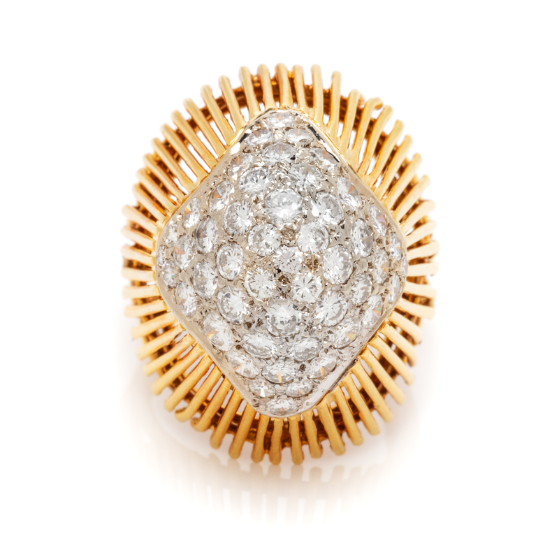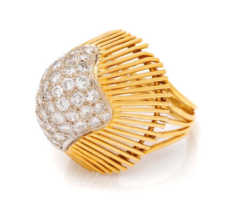 consisting of a high dome design containing 57 round brilliant cut diamonds weighing approximately 2.35 carats total.Stamp: (obscured maker's mark).
