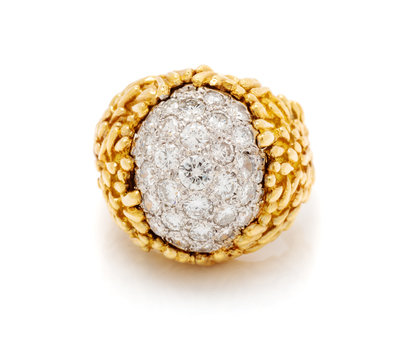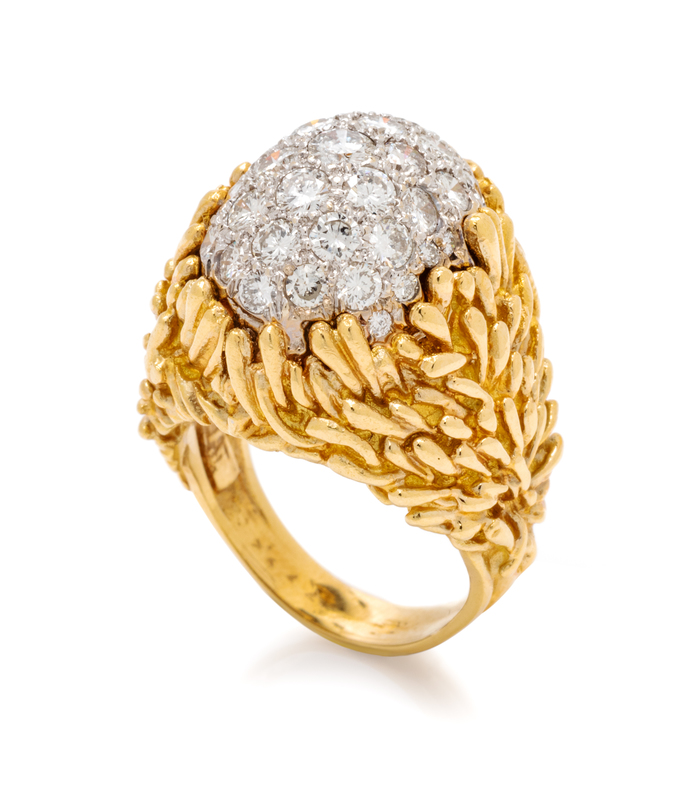 containing 36 round brilliant cut diamonds weighing approximately 1.90 carats total in a domed setting with textured gold surround.Stamp: 18K (maker's mark for Hammerman Brothers) PLAT 54 7664.