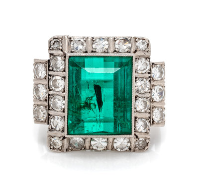 A Platinum Topped White Gold, Emerald and Diamond Ring, 5.90 dwts.