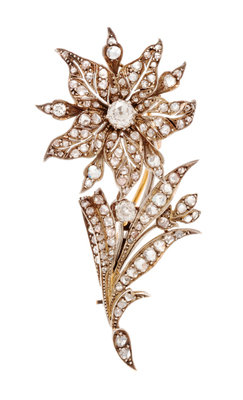 A Silver Topped Rose Gold and Diamond Flower Brooch, 11.50 dwts.