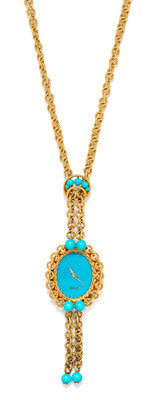 An 18 Karat Yellow Gold and Turquoise Ref. 6865 Pendant/Necklace Watch, Piaget, 63.30 dwts.