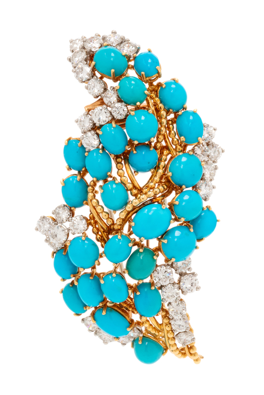 An 18 Karat Yellow Gold, Platinum, Turquoise and Diamond Brooch, Cartier, Inc., 19.60 dwts.