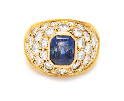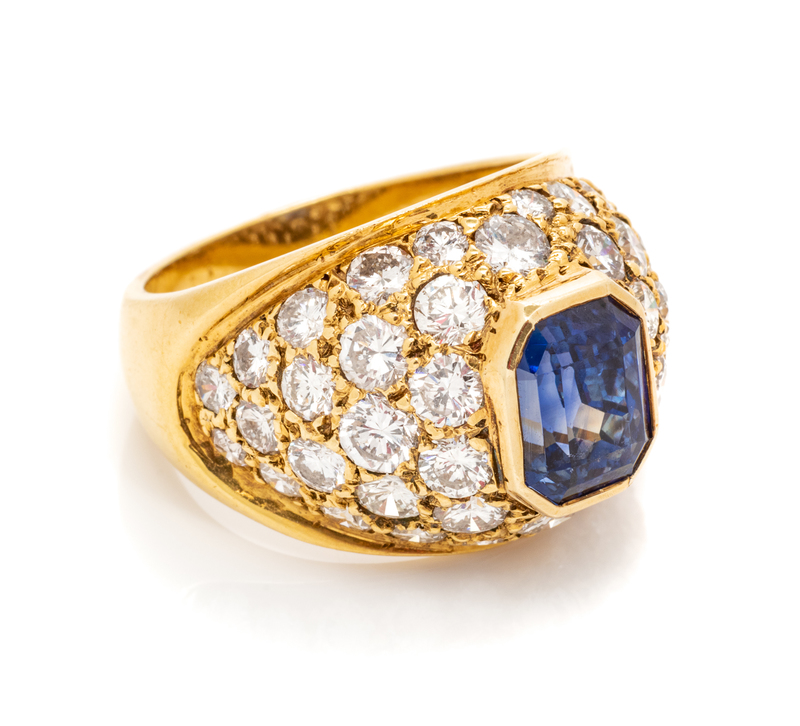 An 18 Karat Yellow Gold, Sapphire and Diamond Bombe Ring, 6.70 dwts.