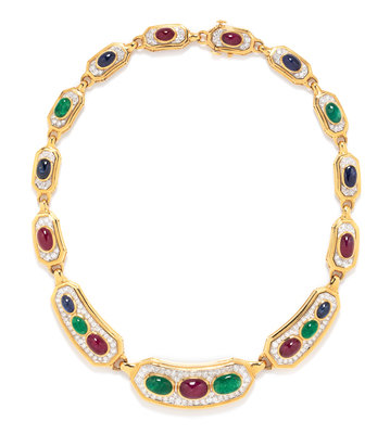 An 18 Karat Yellow Gold, Platinum, Diamond and Multigem Necklace, David Webb, 78.90 dwts.