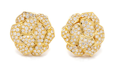 A Pair of 18 Karat Yellow Gold and Diamond Flower Earclips, 17.90 dwts.