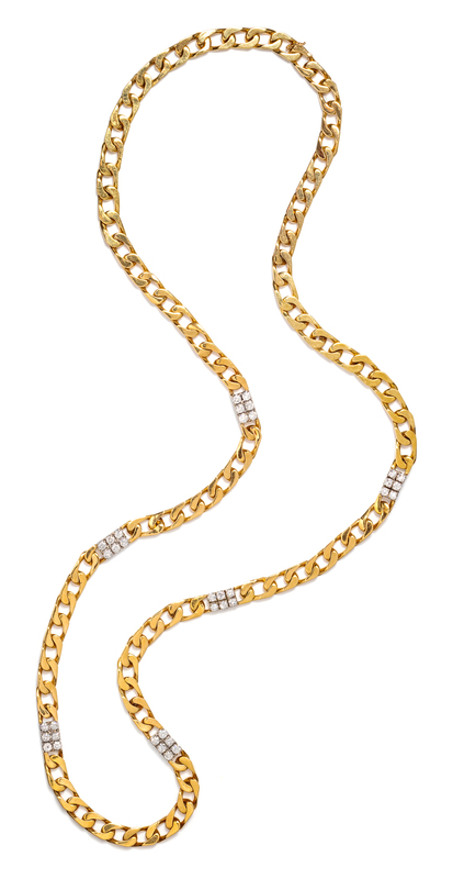 A Bicolor Gold and Diamond Longchain Necklace, 114.40 dwts.