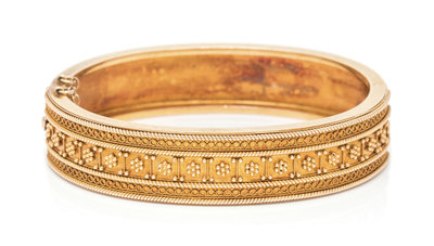 An Etruscan Revival Yellow Gold Bangle Bracelet, 14.00 dwts.