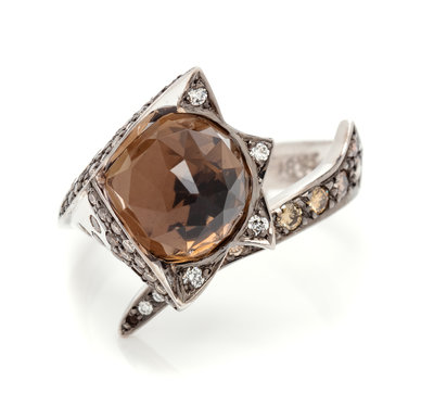 An 18 Karat White Gold, Smoky Quartz and Colored Diamond Ring, Stephen Webster, 6.00 dwts.