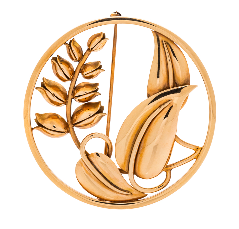 A 14 Karat Yellow Gold 'Lily of the Valley' Brooch, Georg Jensen, 13.00 dwts.