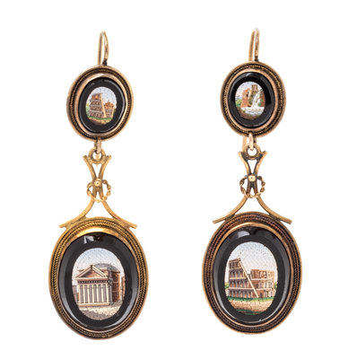 A Pair of Victorian Grand Tour Yellow Gold and Micromosaic Earrings, 7.05 dwts.