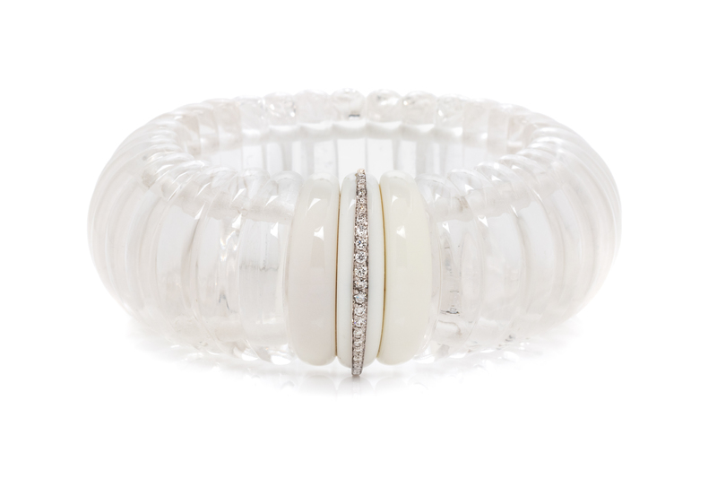 An 18 Karat White Gold, Rock Crystal, White Agate and Diamond Expandable Bracelet, Sanalitro, 100.00 dwts.
