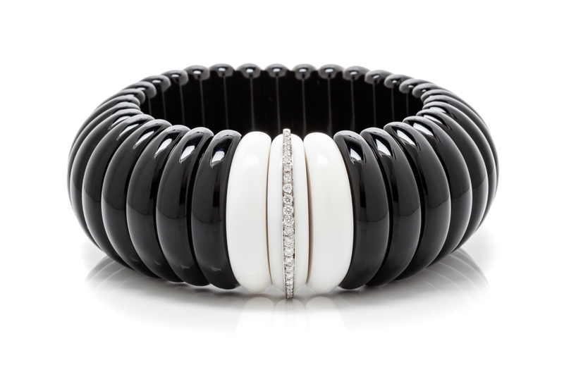 An 18 Karat White Gold, Onyx, White Agate and Diamond Expandable Bracelet, Sanalitro, 89.80 dwts.