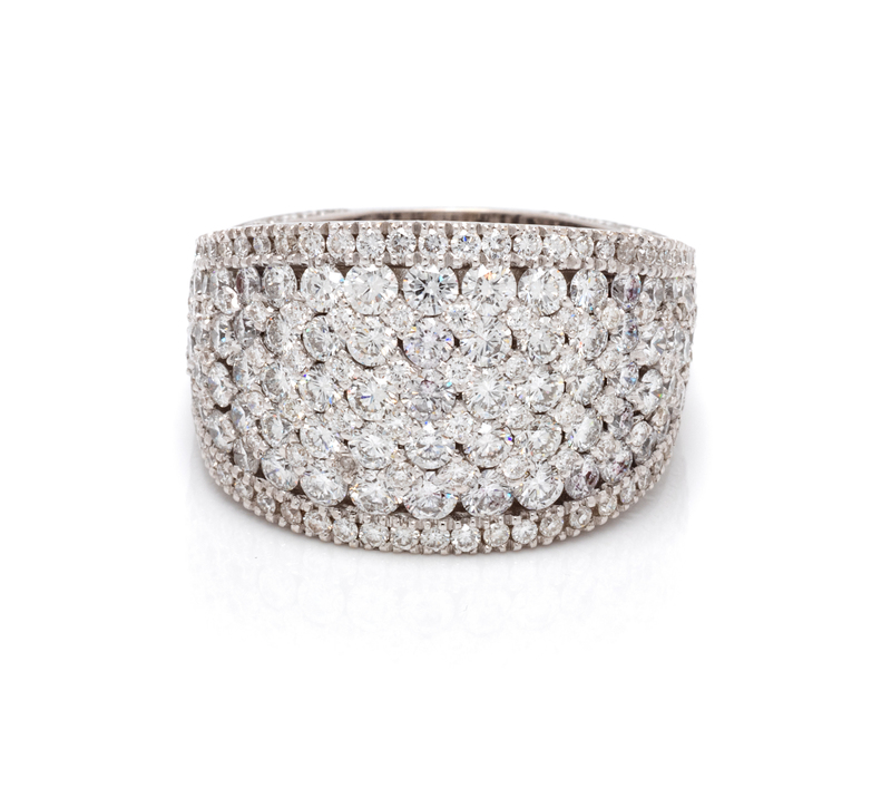 containing numerous round brilliant cut diamonds weighing approximately 5.00 carats total.Stamp: 750.