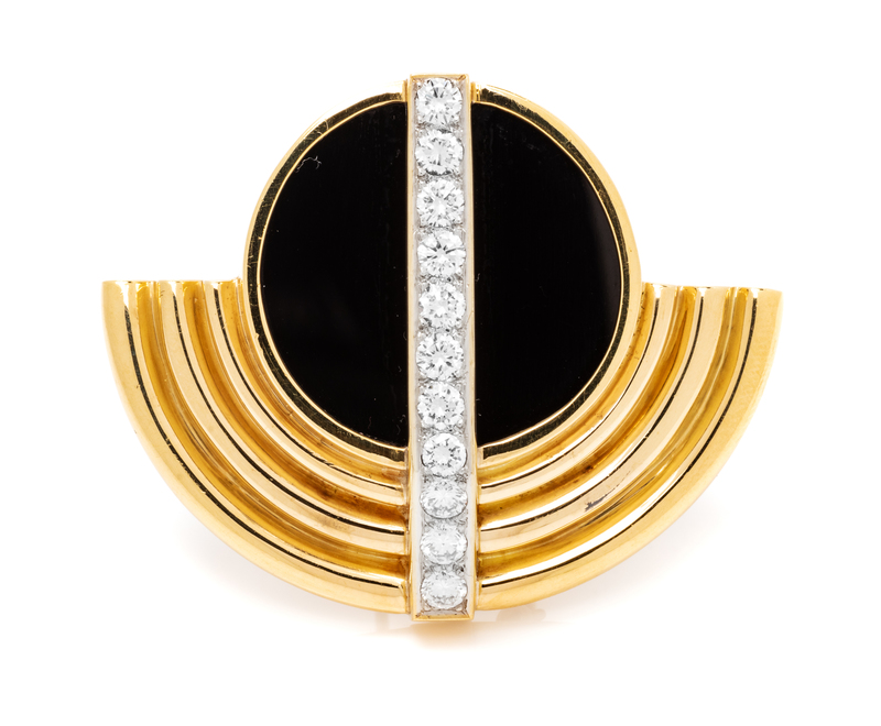 An 18 Karat Yellow Gold, Diamond and Onyx Brooch, Susan Berman, 17.25 dwts.