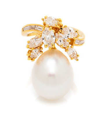 An 18 Karat Yellow Gold, Cultured South Sea Pearl and Diamond Ring, 8.00 dwts.